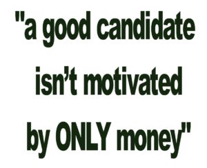 Reality: A good candidate isn’t motivated by ONLY money. While it’s true that someone who’s just chasing a bigger paycheck is more likely to be recruited away by an even higher paycheck, it’s by no means a guarantee. Further, to assume that money shouldn’t factor into the equation at all is just naïve.