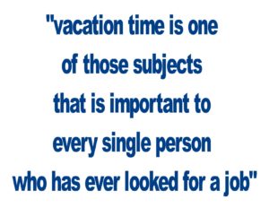 organization. Much like salary, vacation time is one of those subjects that is important to every single person who has ever looked for a job, yet is rife with so much taboo that to even mention it early in the interview process is akin to reciting a gypsy curse.