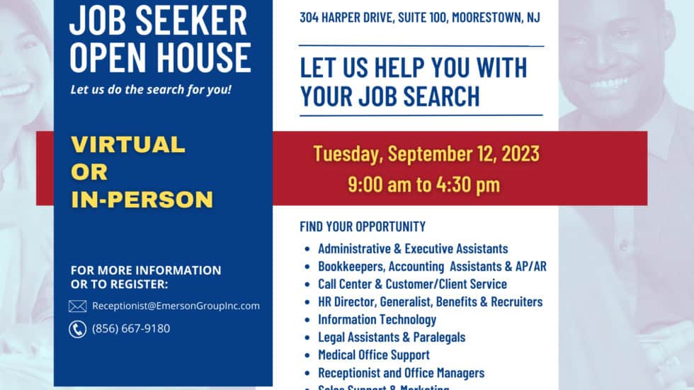Emerson Group’s JOB SEEKER OPEN HOUSE – Find your next job, talk with a recruiter, let us do the search for you!