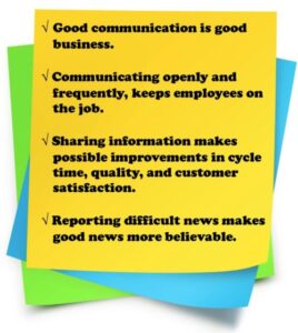 Communicating openly drives several business metrics. Informed employees are more productive and more loyal to the organization, and they represent your business more effectively to customers.