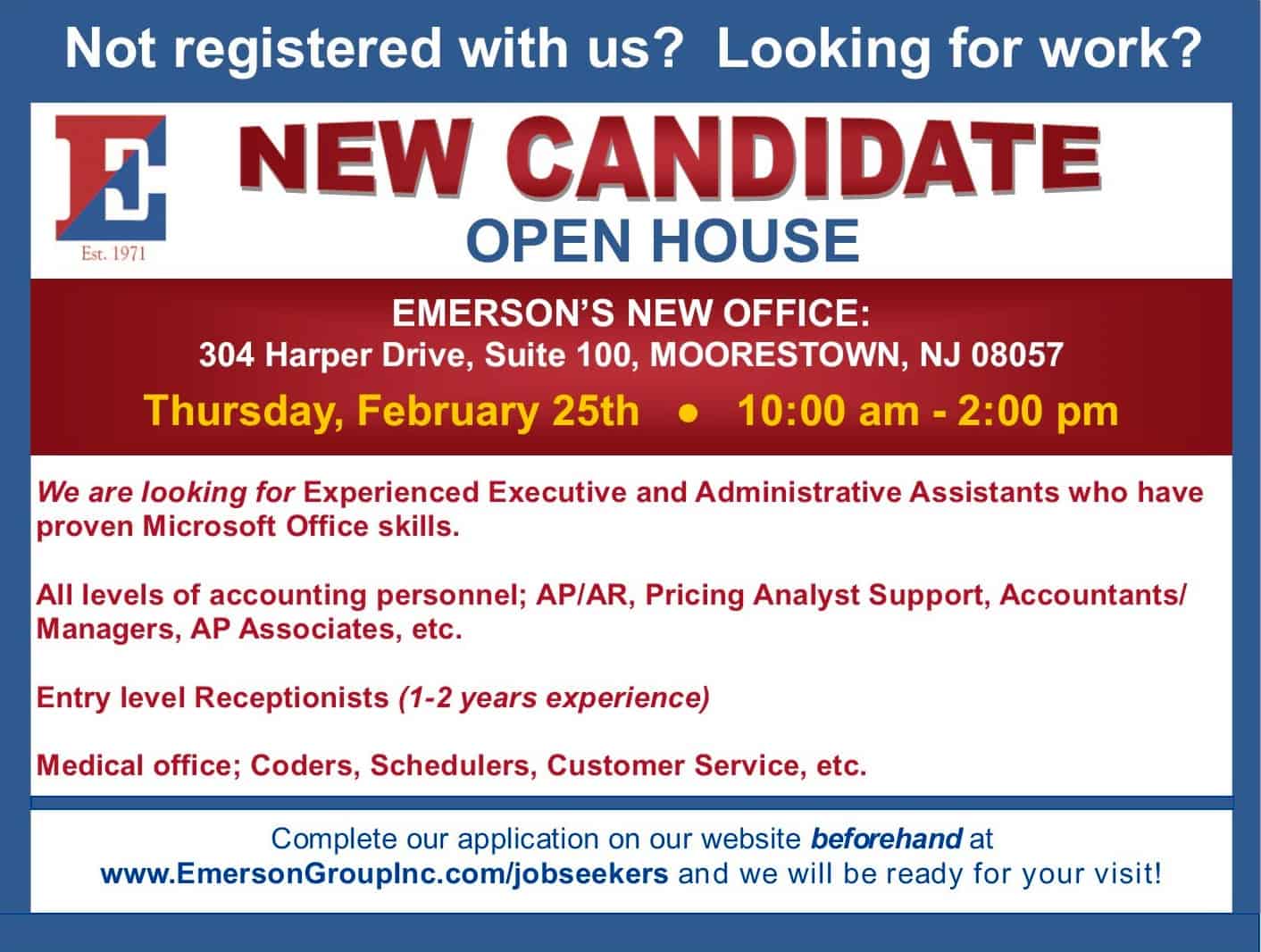 Emerson Group – New Candidate Open House – Thursday, Feb 25, 2016 – 10am – 2pm