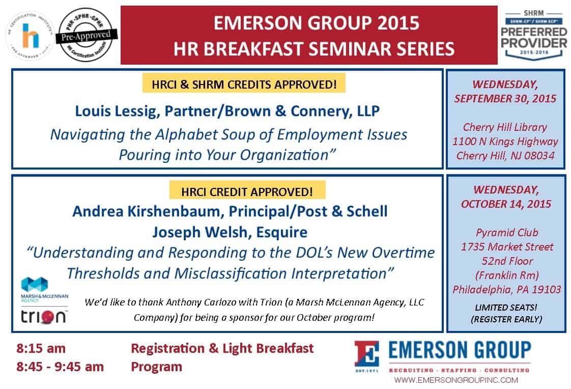 Registration is still open for our last two HR Seminar Series which have been APPROVED FOR HR credit(s). (Click here) to register for one or both of these seminars.