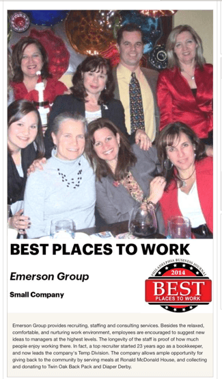 Check out Emerson Group’s photo (click here) in the Philadelphia Business Journal’s Best Places to Work photo slide show of the 2014 winners. We are photo #29!