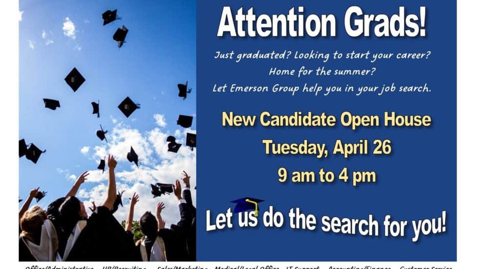 Attention Grads! Looking for Work? Emerson Group Open House – April 26 from 9 AM to 4 PM