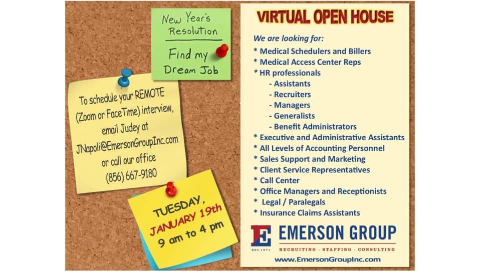 Register for Emerson Group’s New Candidate Virtual Open House Jan 19th