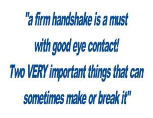 - A firm handshake is a MUST with a good eye contact! Two very important things that can sometimes make or break it!